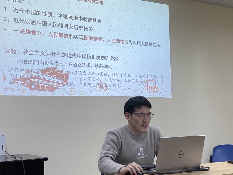 随后,鲁晓阳同志介绍了新民主主义革命的性质、特点,并总结了新民主主义革命的经验和意义。在知识竞答环节,他强调新民主主义新民主主义革命与旧民主主义革命的区别点集中表现在①新民主主义的领导者是无产阶级, ②指导思想是马克思主义。最后,刘美萱同志从“为什么要先经新民主主义社会过渡,而不直接转变为社会主义社会”这个问题出发,介绍了新民主主义社会的问题和主要矛盾,引出过渡时期总路线,并介绍三大改造的具体过程和意义,并强调1956年底社会主义改造基本完成是中国进入社会主义社会的标志。