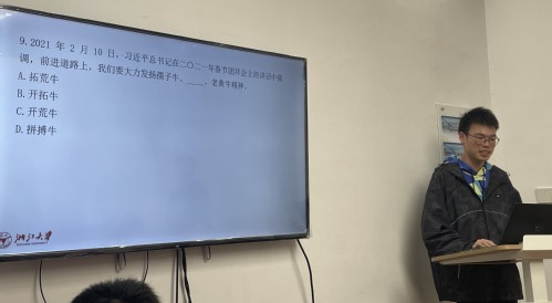 大会伊始,唐炜博同志向大家介绍了本次党团知识竞赛的议程及规则,包括限时选择、接龙游戏、小组讨论三个环节,并将与会成员分为四个小组进行比赛。